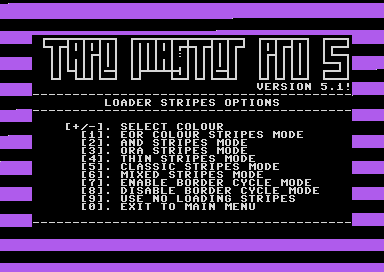 Create, and design your own tape loader, from a series of options, and then save a runnable master to disk. After you have finished, load in the master files you saved from disk, and write the music, picture and game to tape in a few minutes.